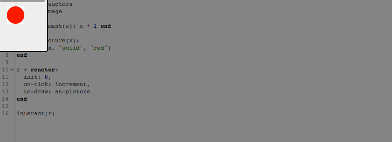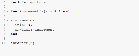 fun increment(x): x + 1 end reactor: on-tick: increment, init: 10, end