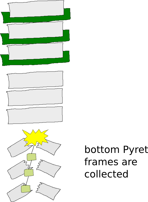 If the stack limit is reached and an exception thrown, the bottom Pyret frames will have their intermediate state stored: