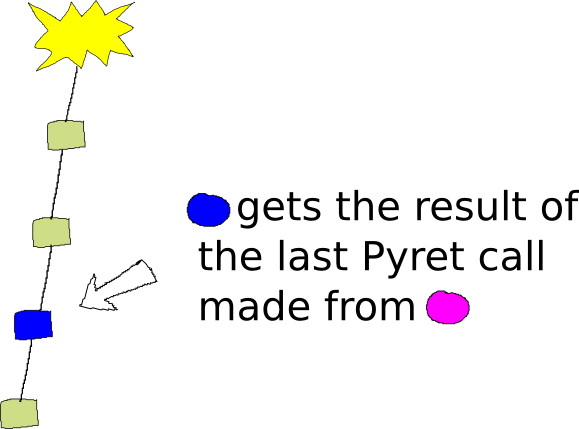 This means that in the simulated stack, the second callback (blue in the picture), will receive the result of the last call to a stack-managed function from the first callback (pink in the picture):