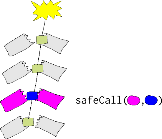 Runtime.safeCall combines the two provided functions in a special stack frame: